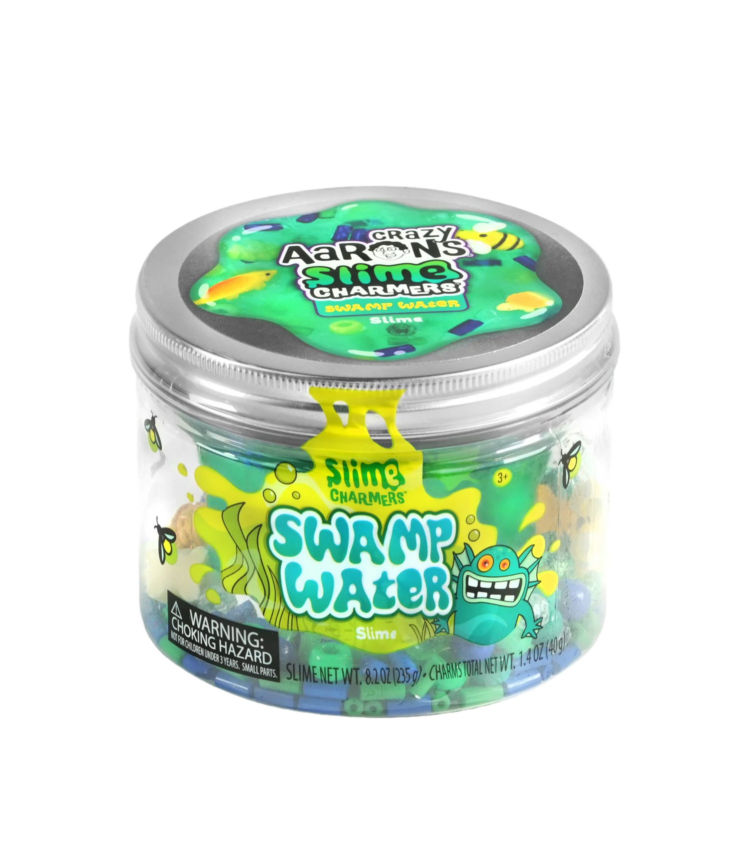 You won’t believe what you can uncover in the new Crazy Aaron’s® Slime Charmers™ Swamp Water. Slimy fish, curious creatures, and murky waters await you in every jar of this classic dark green slime. The unique charms bring your slime to life to create the ultimate swamp experience. So, feel, squish, and create the swamp in the palm of your hands with Slime Charmers™ Swamp Water.