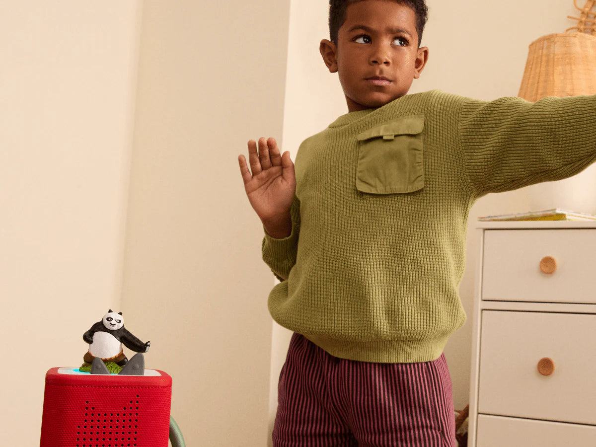 Po, the clumsy, noodle-slurping panda dreams of becoming a kung fu legend. When the villainous snow leopard Tai Lung threatens Po's homeland, Po is chosen to fulfill an ancient prophecy and defend the Valley from attack. Training under Master Shifu, Po embarks on an epic high-kicking adventure as he sets out to thwart Tai Lung's evil plans. The Kung Fu Panda Tonie figure brings the action of the original movie to your Toniebox through storytelling and original voices, including Jack Black and Angelina Jolie.