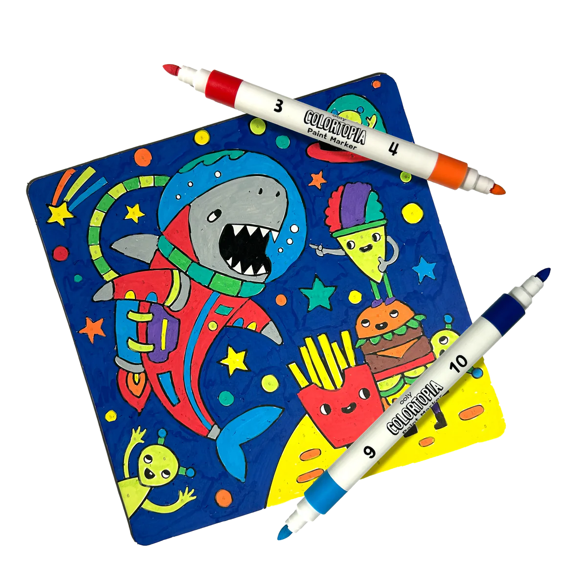 Beginner painters can create their masterpiece in no time with this sweet and smart color by numbers kit. Bring two epic adventures to colorful life by following the number guide and using the included premium paint markers. Watch how an astronaut shark and a French fry alien transform into vibrant characters as the water-based markers smoothly paint onto the board. And once you’re finished, you can display your work on one of the included sturdy stands. From start to finish, this color by numbers set takes care of everything you need to feel like a real artist! This is a wonderful gift for any kid who’s interested in expressing their creativity.