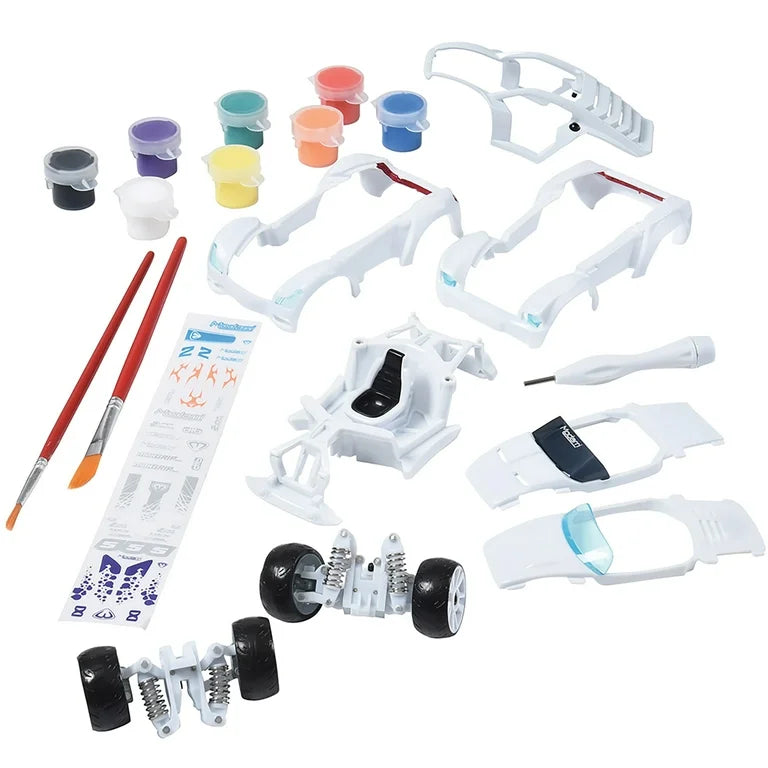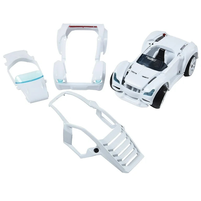 MODARRI: DELUXE PAINT IT AUTO DESIGN STUDIO - The Mix-and-Match Modarri Building System allows you to design your own custom super car. Includes interchangeable parts that allow for endless car designs! It's fun and easy to build your car by stacking the pieces and then tightening a few built-in-screws! Cars have amazing driving mechanism with real steering and suspension - just put your finger in the driver's seat and GO! IT'S EASY AS 1, 2, 3!